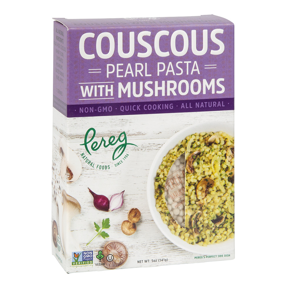 Is Pearl Pasta The Same As Couscous : PEREG COUSCOUS PEARL PASTA WITH MUSHROOMS 5 OZ BOX : If you can't find israeli couscous, i recommend making this recipe with orzo or another small pasta like ditalini.. Israeli couscous, also called pearl couscous or ptitim, makes a great pasta salad. Couscous is a traditional middle eastern dish made from granules of durum wheat semolina, usually prepared by steaming until they're light and couscous is closely related to pasta, as durum wheat, ground into semolina flour is the same type of wheat that is most commonly used for making pasta. Pearl couscous or israeli couscous (called ptitim in hebrew) is a small toasted pasta that tastes quite similar to orzo pasta. A bowl of pearl pasta is far more filling than a bowl of some. Pearl couscous is larger and round and israeli couscous is smaller and rougher like sand.